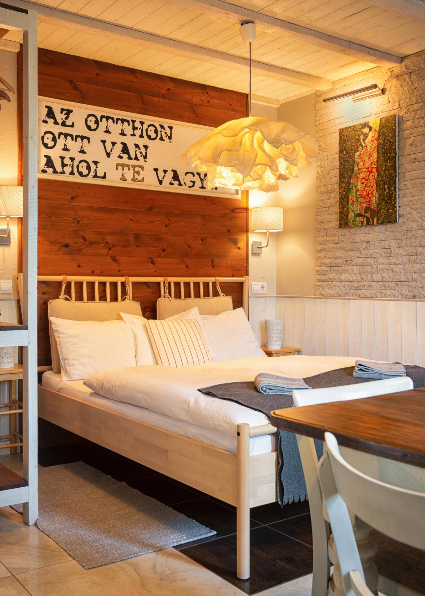 állókádas hálószoba, ágyazható kanapé, fürdőszoba, konyha, étkező, nappali, 2+2 fő részére